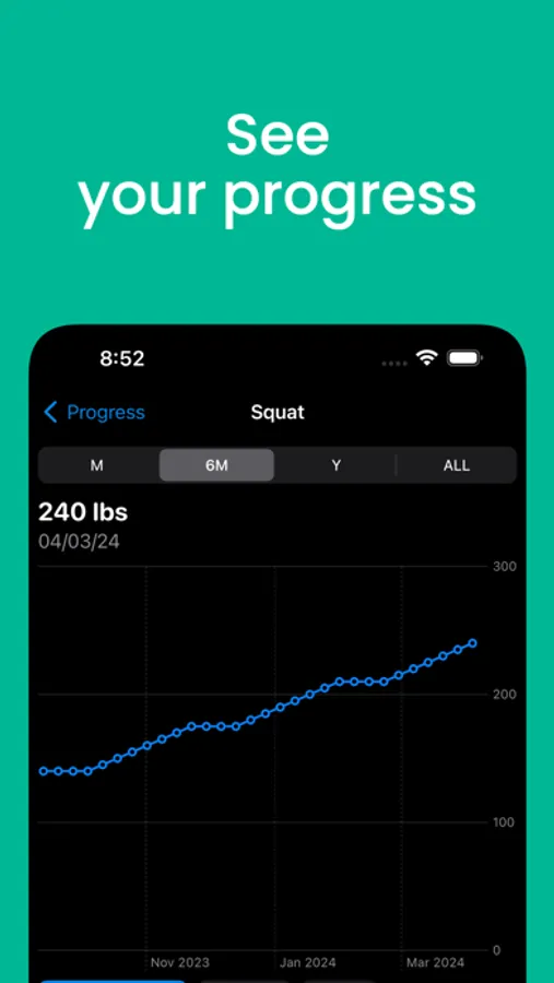 • Easily track your personal records and progression and even calculate your one rep max and total weight lifted