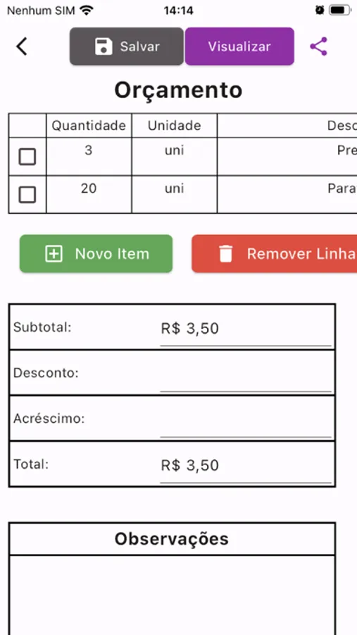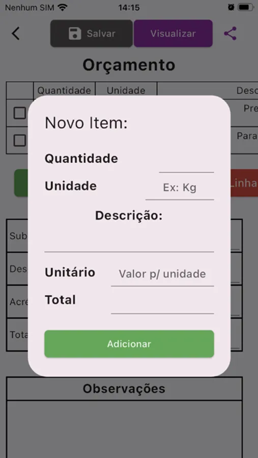 Aplicativo para a criação de orçamentos em PDF. Uma ferramenta que busca agilizar o processo de elaboração de orçamentos, o app utiliza um modelo pré-elaborado onde a pessoa apenas insere o valor dos produtos e os dados, então automaticamente é gerado um arquivo em PDF com um orçamento completo.