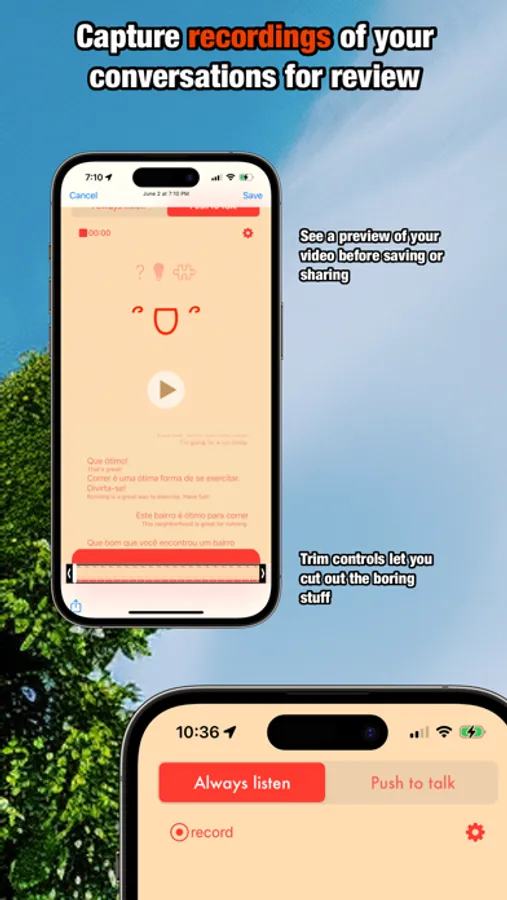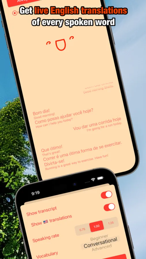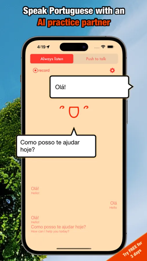 "Practice Portuguese with Sheila" goes above and beyond by offering you a seamless learning experience. The app provides a handy transcript of your conversations, allowing you to review and analyze your progress at any time. What's more, Sheila's capabilities extend beyond comprehension - she can even provide live English translations for anything you or she says, making it easier for you to grasp the nuances of the Portuguese language in real-time.