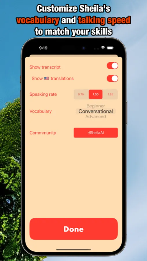 • Engage in natural, spoken conversations with Sheila, your AI language partner.
