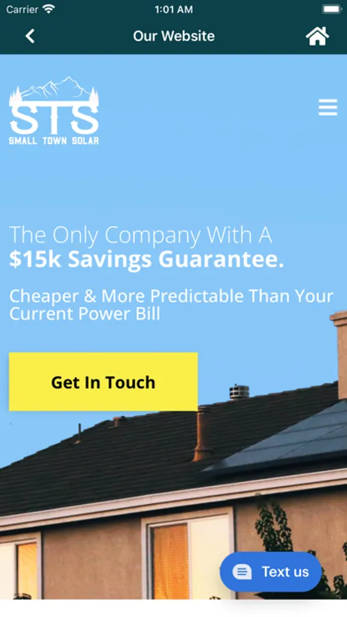 Small Town Solar is a free app available for anyone to download and is used to communicate with Small Town Solar. It is as simple as downloading the App and register as a user. Once registered, you can begin communicating right away. We will reach out to you keep you updated via push notifications and in-app messaging to improve your overall buying experience. Once you purchase your a Product from Small Town Solar, feel free to write a review. We appreciate your feedback.
