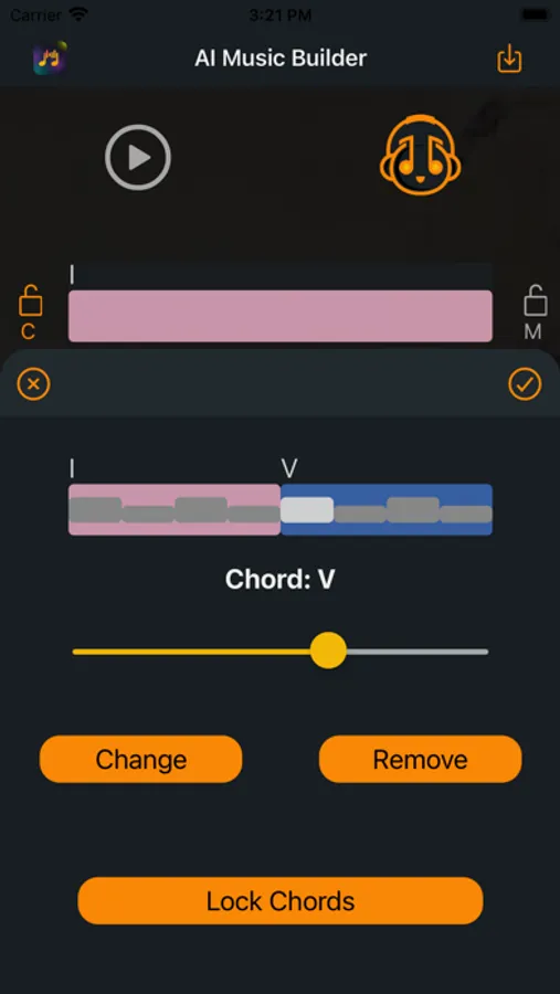 Use this AI music builder to instantly generate melodies and harmonies, and then customize the song by locking melodies or chords