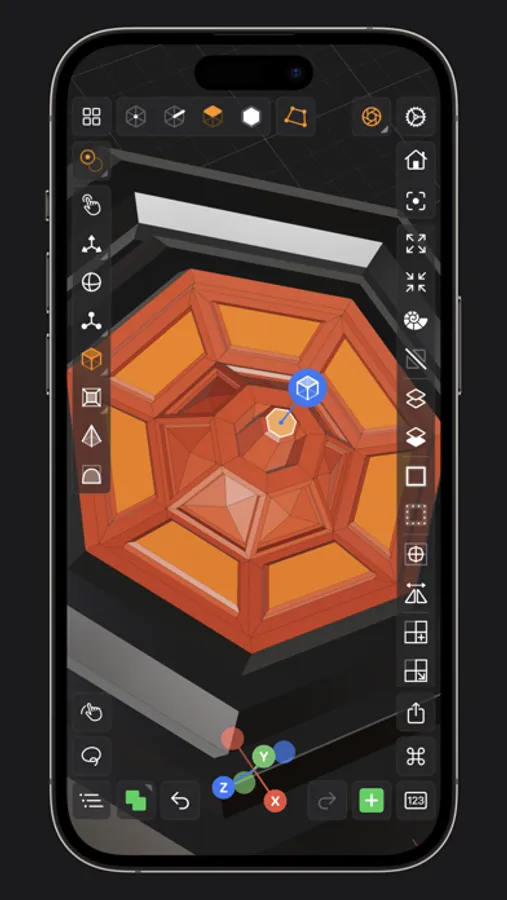 • Tap on one of the gizmo handles to bring up an input field for precise transformations & mesh operations