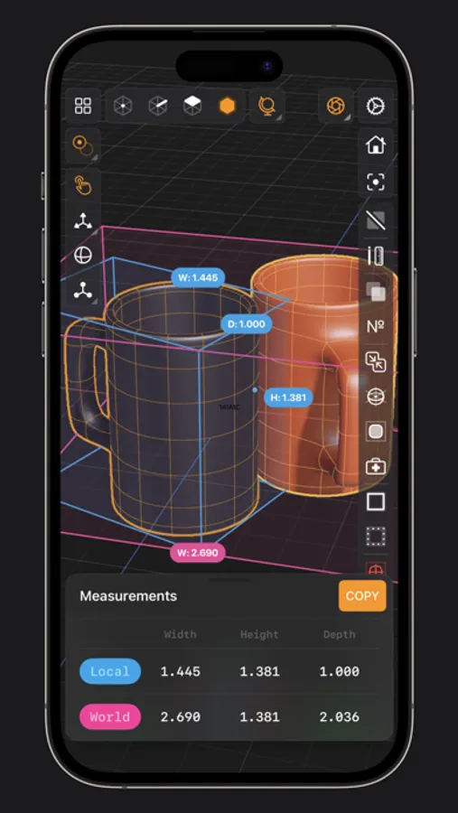 • Easily navigate to any part of your model by dragging and pinching: two finger pinch to zoom and roll, and one finger drag to rotate