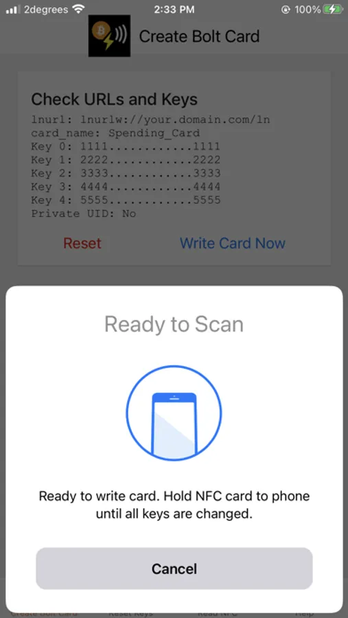 Quickly program a blank NFC card (NTAG424DNA) to act as your own personal Boltcard. A contactless / paywave like experience for the Lightning network. Before programming your NFC card you must set up your own https://github.com/boltcard/boltcard