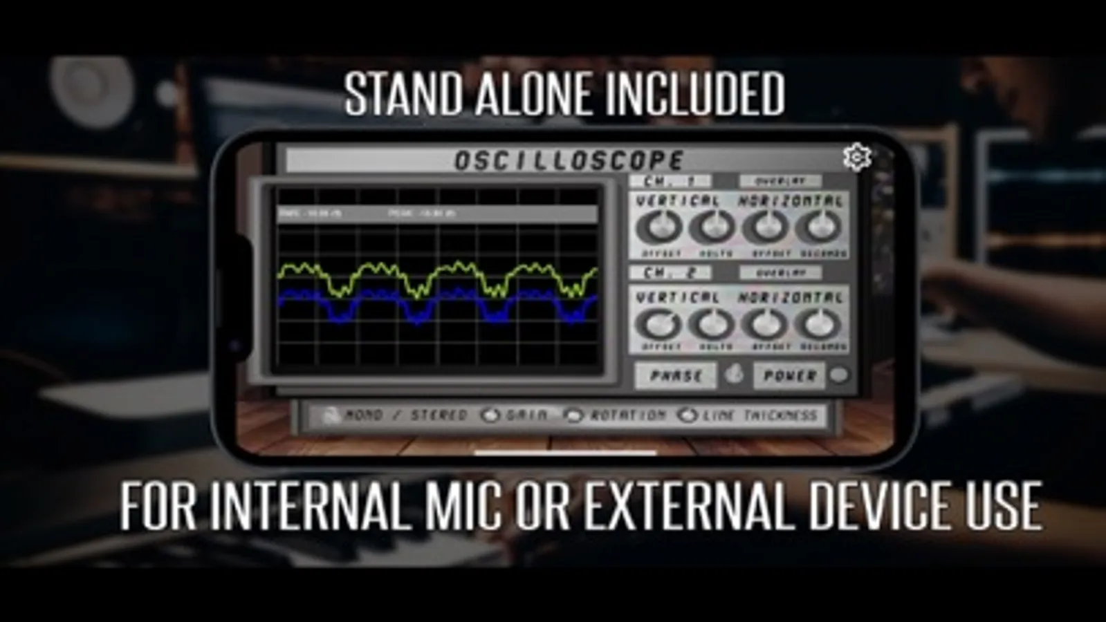 Complete with RMS/Peak meter and controllable Vertical and Horizontal Offset. As well as separate Voltage and Gain controls, coupled with visual controls like Line Thickness and Rotation for a complete experience.