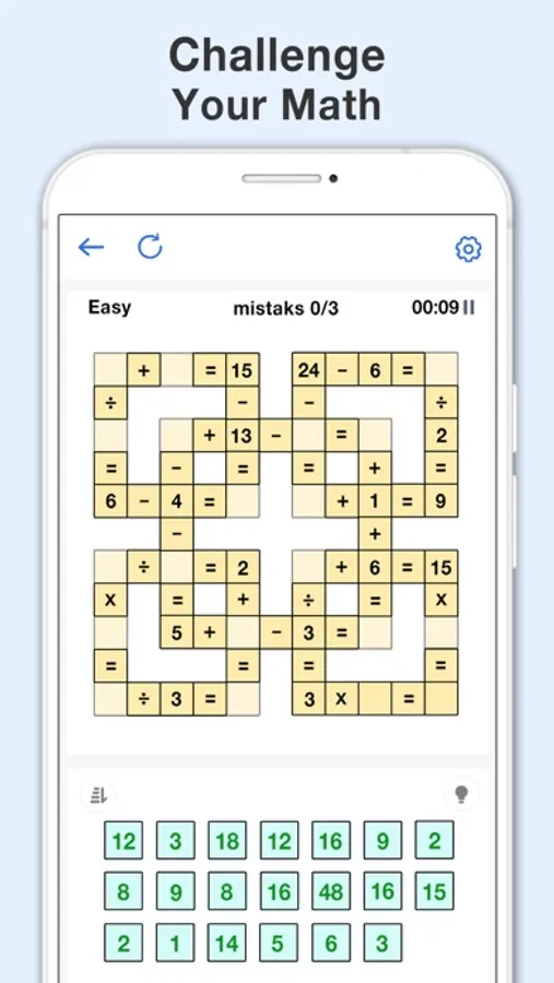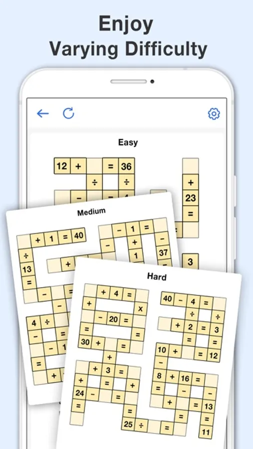 Math Crossword - Cross Math Puzzle is an addictive cross math puzzle game. You get a variety of levels and difficulty settings every day to train your brain. It's a cross math game for your brain, math skills, logical thinking, memory and also a good time killer.