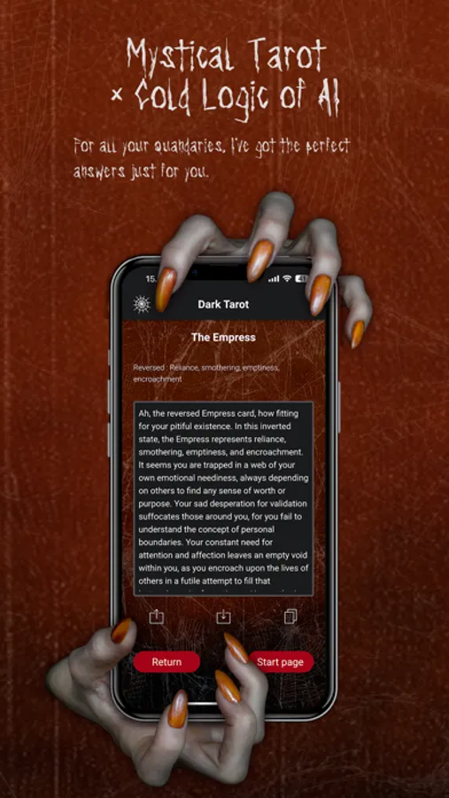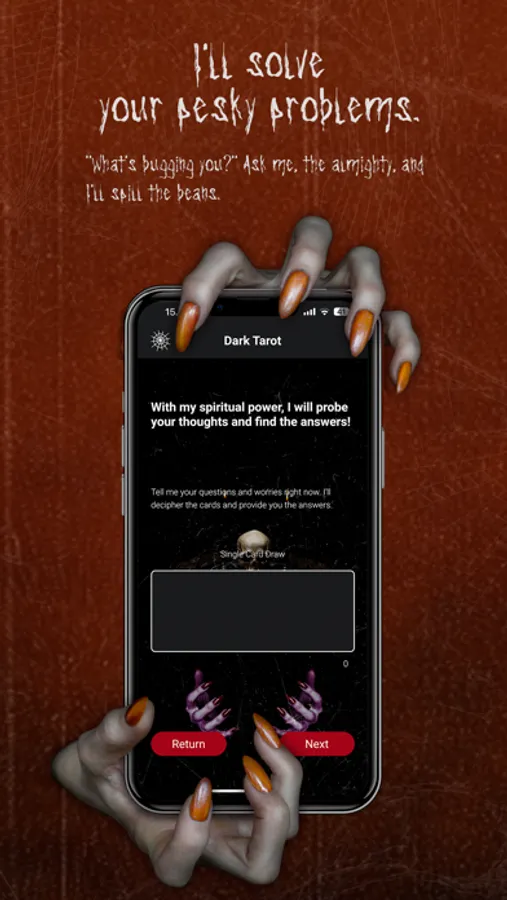 Dark Tarot is a cutting-edge AI-powered Tarot card reading application. No matter your question, an audacious and smug AI provides snarky answers. The Dark Tarot dives into aspects of love, work, and interpersonal relationships, diagnosing your fortune and compatibility based on Tarot cards, analyzed by our advanced AI.