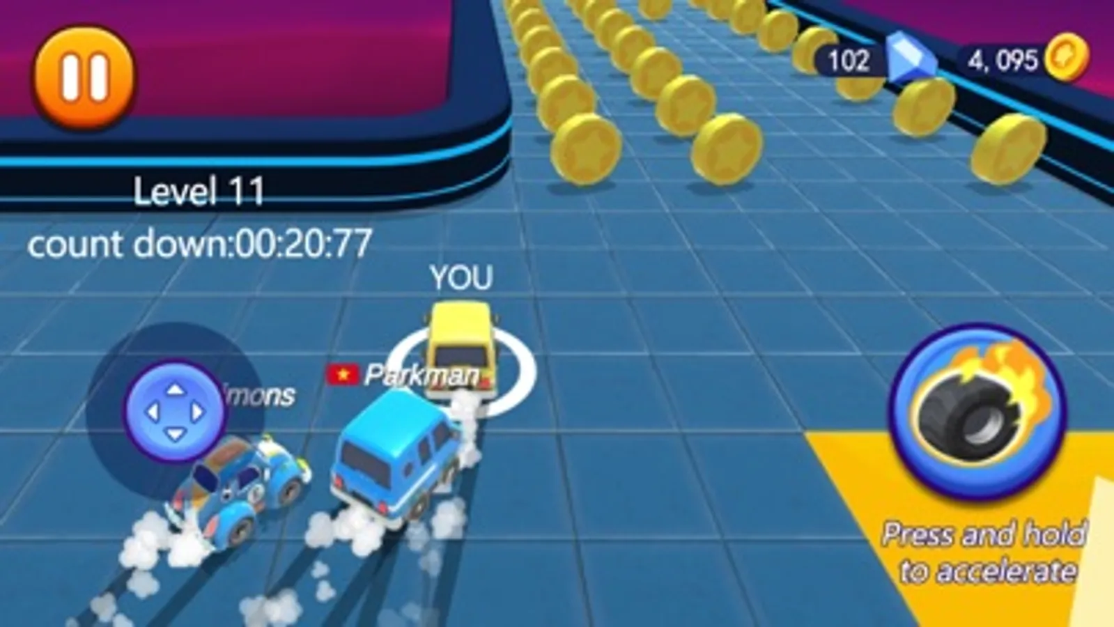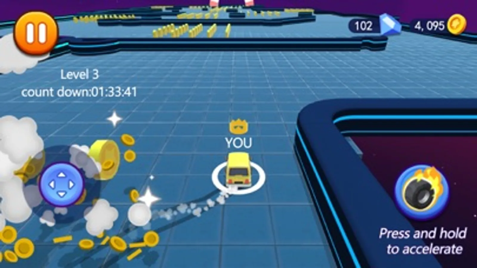 Avoid obstacles on the map, find shortcuts in the maze like track, and get gold coins.