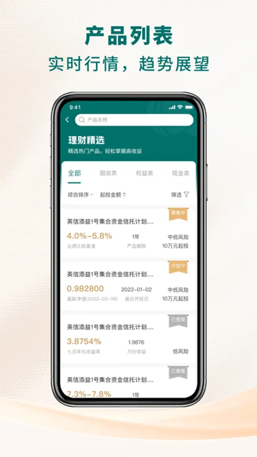 1、产品查询及在线预约:查看英大信托发布的各类产品,在线预约热销产品;