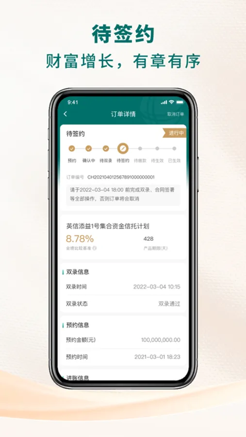 2、电子签约及远程双录:可在线签订信托合同并完成远程双录;