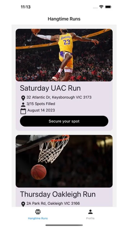 Hangtime Basketball App - Where ballers can make booking to join a basketball game seamlessly!