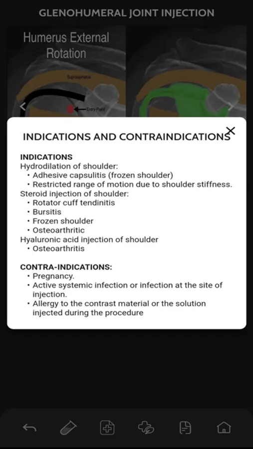 VBS RadGuide: MSK Injections is a comprehensive mobile application for healthcare professionals who perform musculoskeletal (MSK) injections using fluoroscopy and ultrasound guidance. In addition to step-by-step guidance for procedures, the app also includes information on the medications used for injections, indications and contraindications, and anticoagulation guidelines.