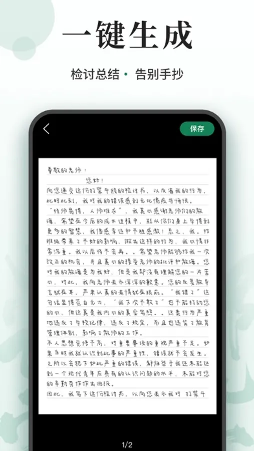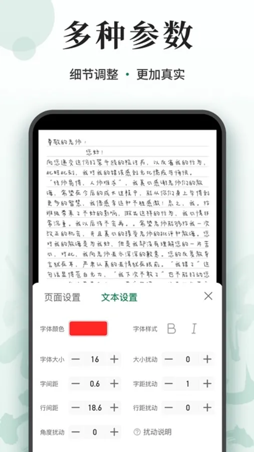 手写模拟器是一款专为需要频繁手写的用户设计的应用。它可以模拟手写,使您能够轻松地创建各种手写文档,无需手抄或打印。我们还提供了一键生成功能,可以让您在不到几秒钟内就可以完成手写文档的创建。