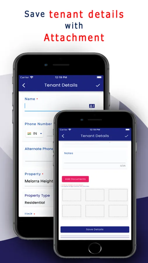 2. Save tenant details with attachments useful for saving important documents in the app.