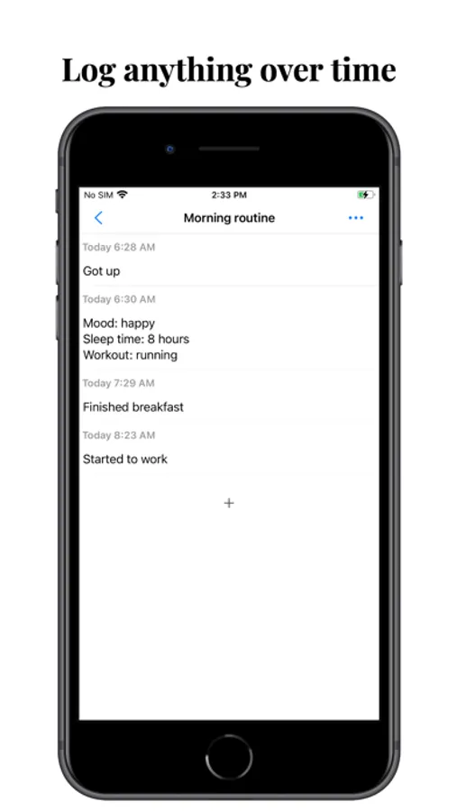 - Track anything with a line of text, timestamp automatically created.