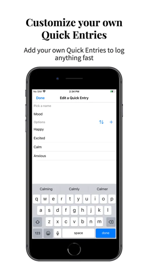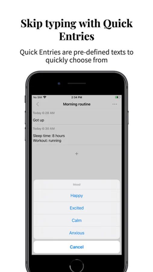 - Use Quick Entries to log pre-define text without typing.