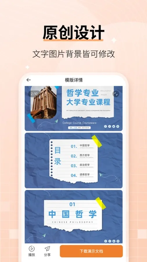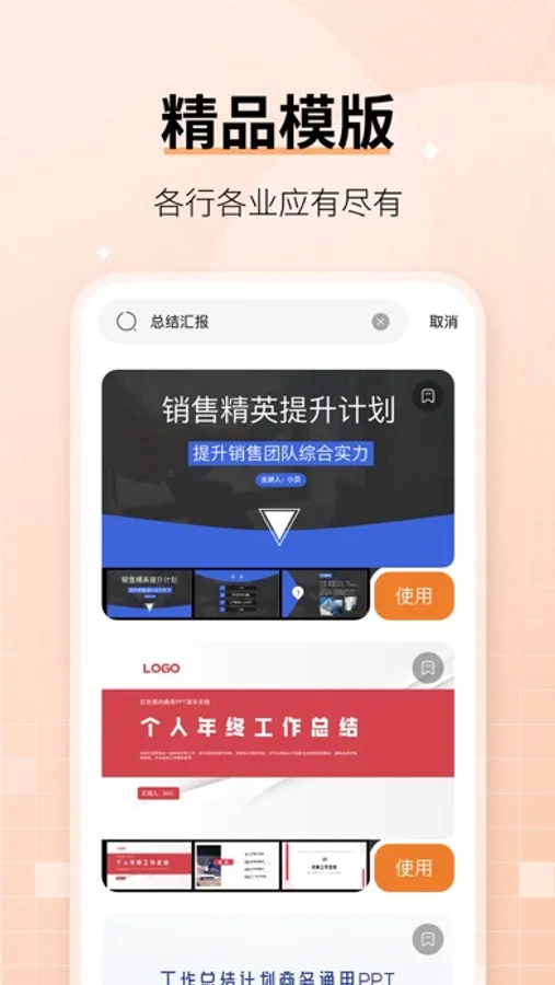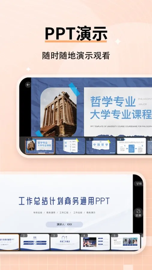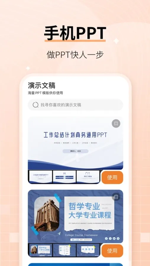 PPT是一款包含PPT模版、PPT浏览的手机应用软件,您可以在手机上轻松进行幻灯片制作,创建演示文稿。