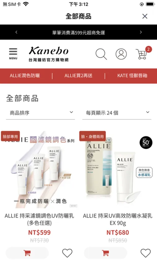 Kanebo台灣鐘紡官方APP販售旗下品牌的彩妝保養品,