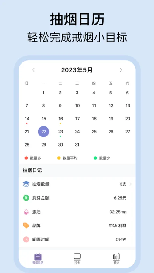 无论您是想戒烟还是统计抽烟记录都可以下载使用!帮您轻松养成健康生活习惯!