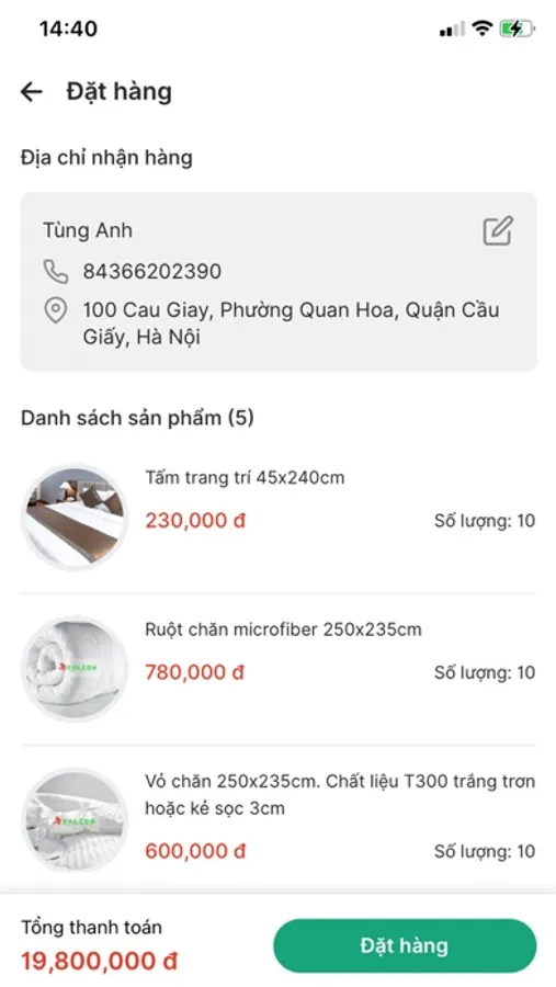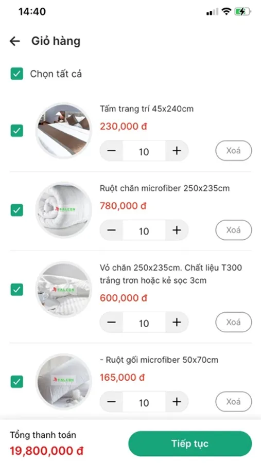 Tất cả các thông tin về sản phẩm, dịch vụ, hình ảnh hiển thị trên ứng dụng đều thuộc quyền quản lý của công ty Falcon. Mọi thông tin đơn hàng, thanh toán đơn hàng cũng thuộc quyền quản lý và trách nhiệm của công ty Falcon.