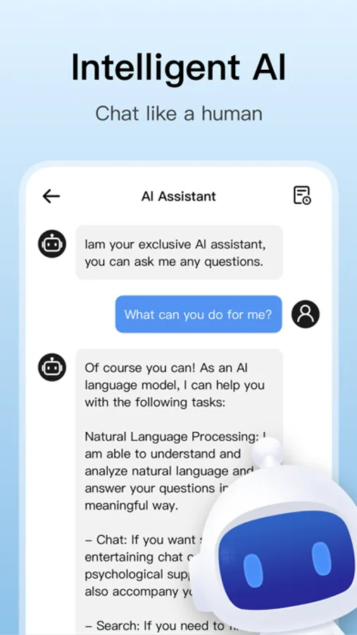 WeGPT is an innovative mobile application that provides users with a highly intelligent experience of instant conversations and interactions with robots. Whether you are looking for answers to questions, chatting, or entertainment, this app can meet your needs.