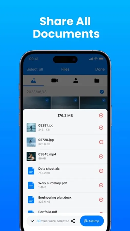 - Quickly transfer images, videos, audios, documents, and contacts