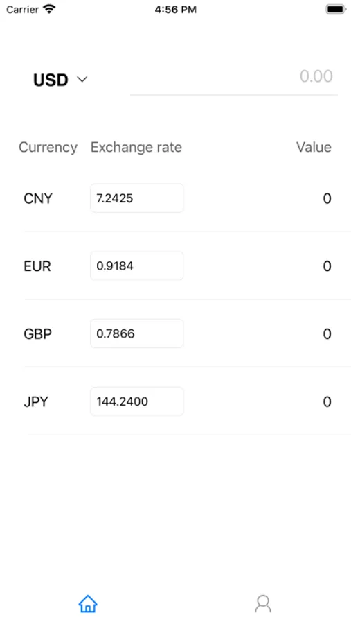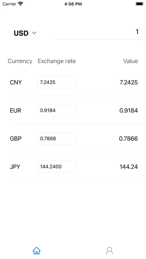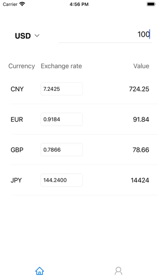 You can enter the value of one currency, and the app will automatically calculate the value of other currencies