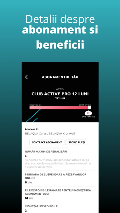 Detalii despre contul tău – știi mereu ce beneficii sunt incluse în abonamentul tău și câte zile mai este valabil