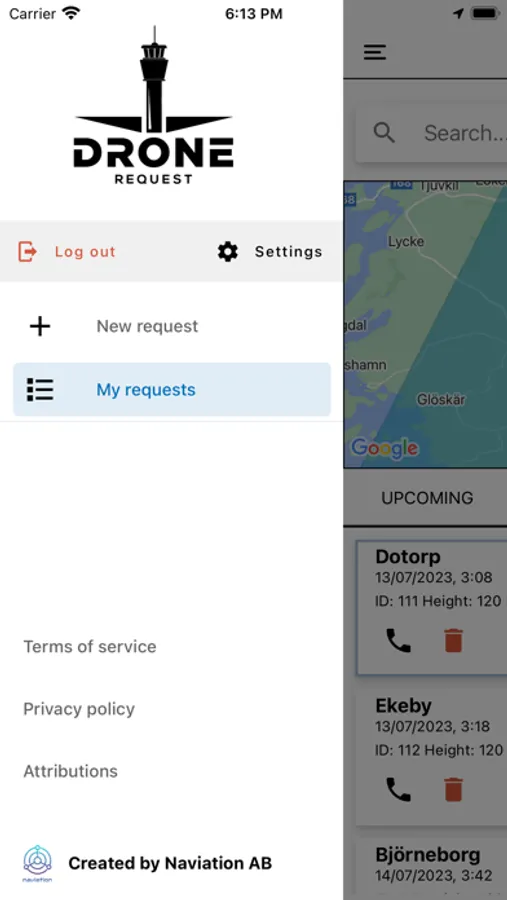 Dronerequest is a platform that facilitates the interaction between drone pilots and air traffic control. The app enables the smooth exchange of geolocation and contact data, and assists air traffic control in the overview of UAS operations, both current and historical.