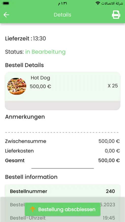 This application is for delivering orders between the customer and the restaurant. It aims at the convenience of the customer and the ease of communication with the restaurant he wants