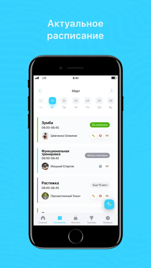 Посмотреть актуальное расписание тренировок;