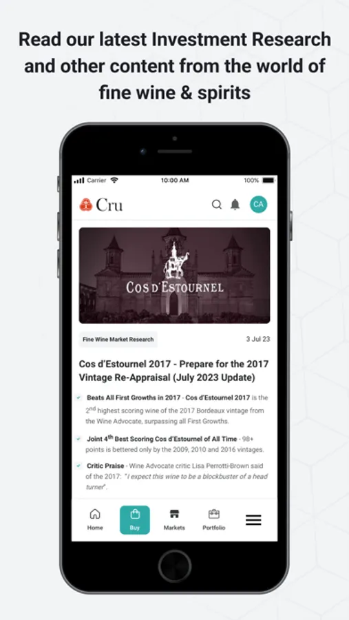 The Cru World Wine app is designed to be your ‘one stop shop’ fine wine & spirits platform, in your pocket!