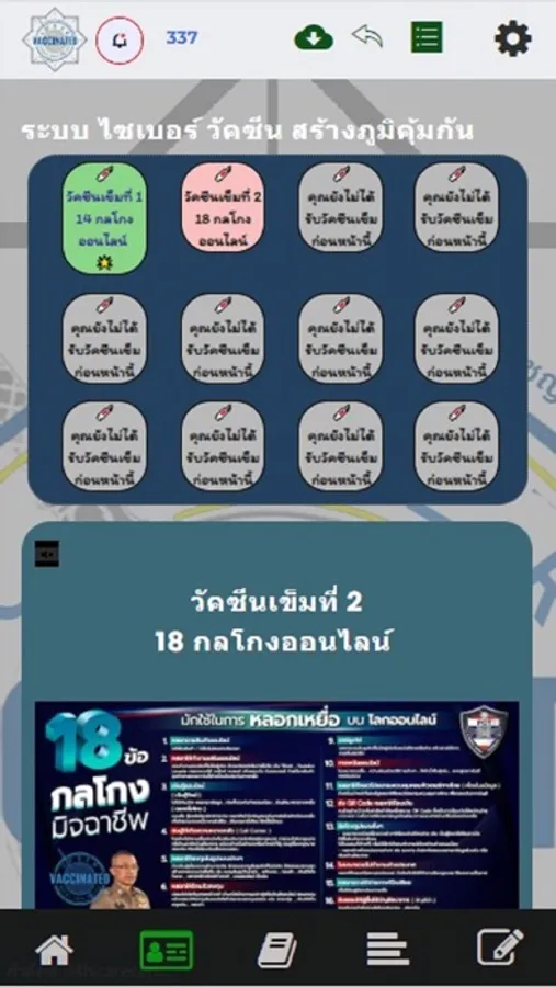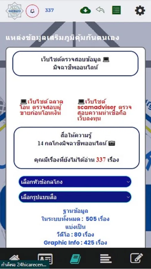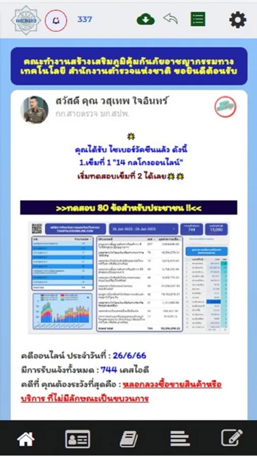 ทดสอบความรู้: แอปพลิเคชันนี้มีทดสอบความรู้เกี่ยวกับอาชญากรรมทางไซเบอร์ที่เต็มไปด้วยคำถามที่ท้าทายและน่าสนใจ ผู้ใช้สามารถทดสอบและปรับปรุงความรู้ของตนเกี่ยวกับเรื่องอาชญากรรมทางไซเบอร์ได้อย่างสนุกสนาน
