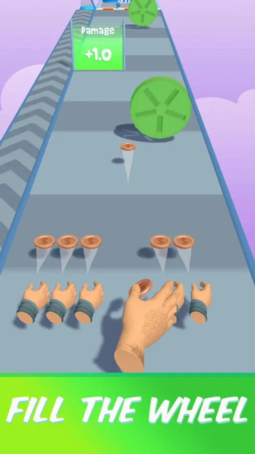 Master the art of coin-throwing in Coin Wheel Run, a thrilling hypercasual game that challenges your precision and reflexes! Play as a nimble hand and aim to fill up rotating wheels with coins, fueling a tank that unlocks new hands for even more coin-throwing fun.