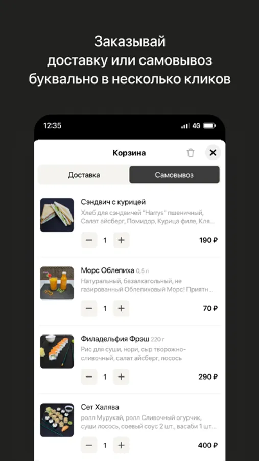— Сделать заказ быстро и с мгновенным подтверждением через приложение;