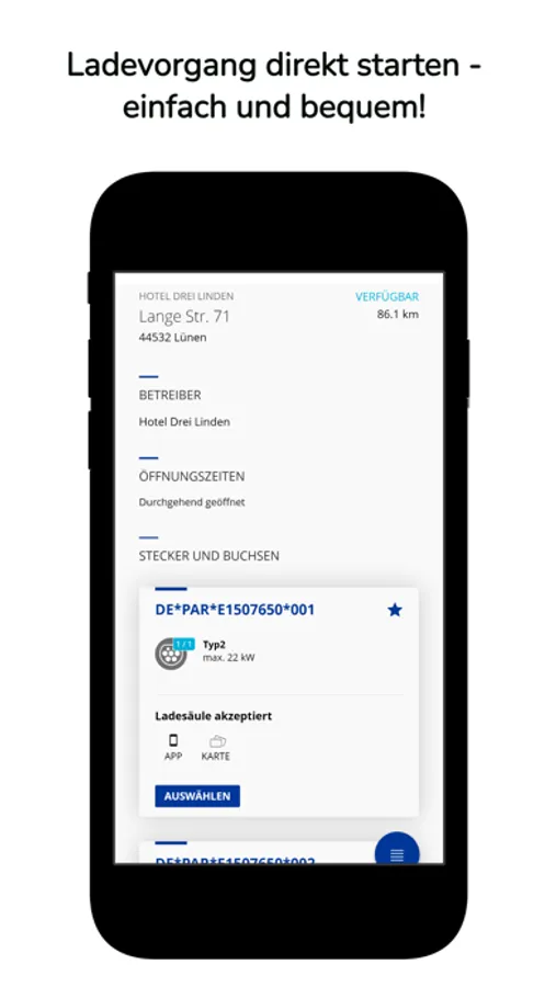 - Live-Status zur Verfügbarkeit aller Ladepunkte
