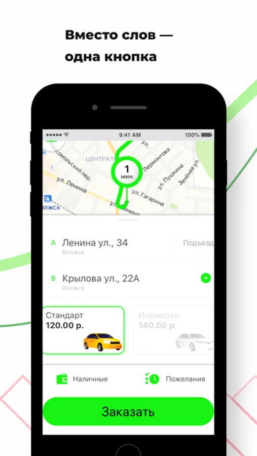 Откройте приложение, укажите адрес и закажите такси, нажав на одну кнопку.