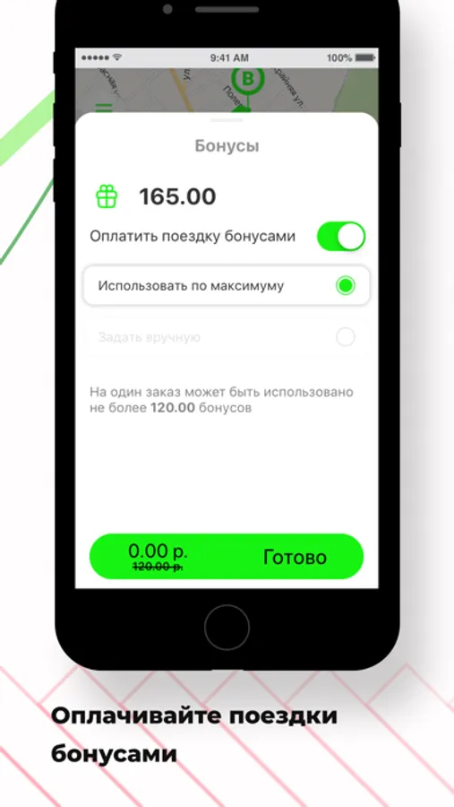 Получайте 5 бонусов с каждого заказа. Экономьте на поездках, оплачивая до 120 р. от суммы счета.
