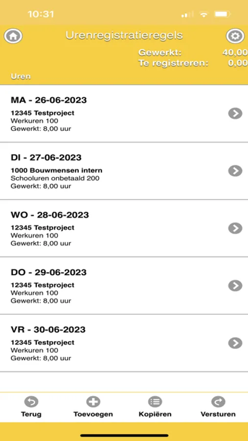 - Eenvoudige kopieer functionaliteiten om uren makkelijk te verantwoorden