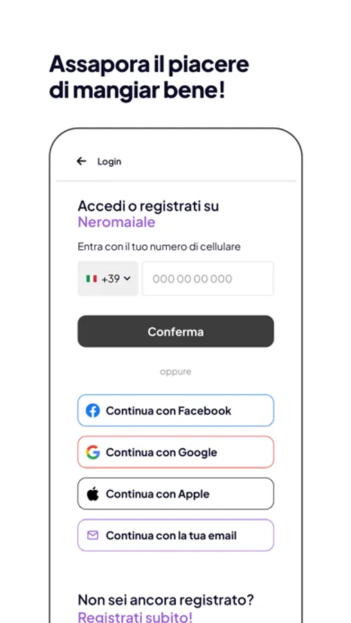 C'è qualcosa che non va con l'app o vuoi saperne di più sulle nostre offerte? Contatta l'assistenza inviando una mail a servizioclienti@neromaiale.it