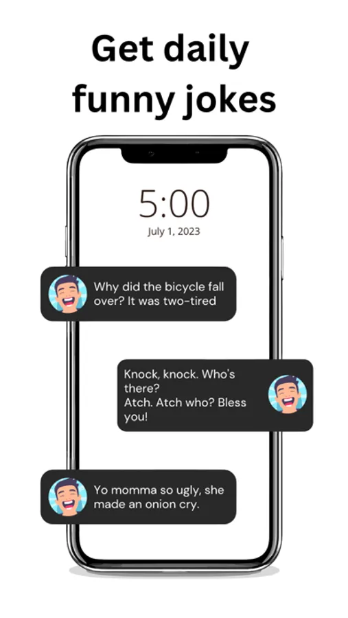 - Start your day with a burst of laughter! Our app brings you a fresh joke every single day, ensuring that you kick off your mornings on a positive and humorous note. You'll receive a delightful notification with the Joke of the Day, guaranteed to bring a cheerful start to your day.