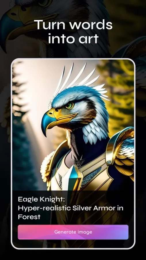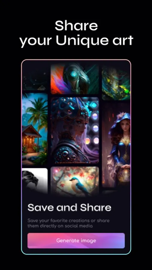AI Art Generator uses artificial intelligence to create unique and beautiful works of art, inspired by your own creativity. With just a few taps, you can turn your thoughts into reality, creating stunning, ready to use images and make your life easier.