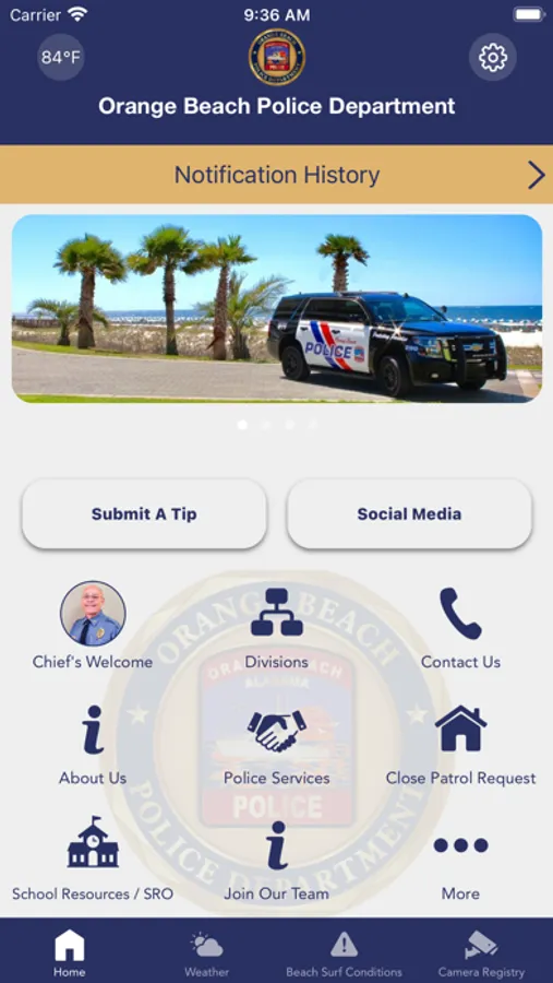 The Orange Beach Police Department mobile application is an interactive app which will help improve our communication with the citizens of Orange Beach and surrounding area. The purpose of this app is to improve our ability to communicate with our citizens Information which will include, but not be limited to Crime Prevention, Police Services, School Resources, and more. Citizens may submit a crime tip directly through the app, as well as see and share social media posts. By empowering people through technology, the Orange Beach Police Department will be able to better protect our city.
