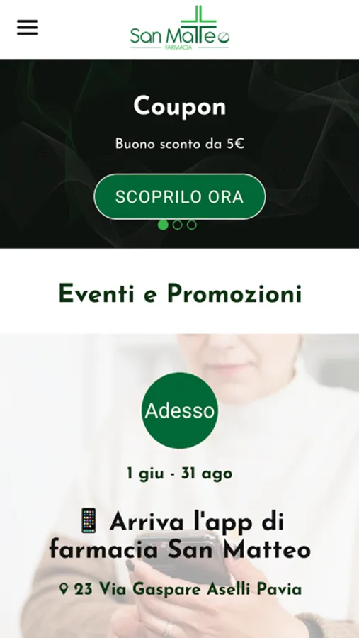 L'App della Farmacia San Matteo ti permette di avere il tuo farmacista di fiducia sempre a portata di mano con consigli, informazioni, prenotazioni, ordini, richieste di prodotti e servizi in farmacia.