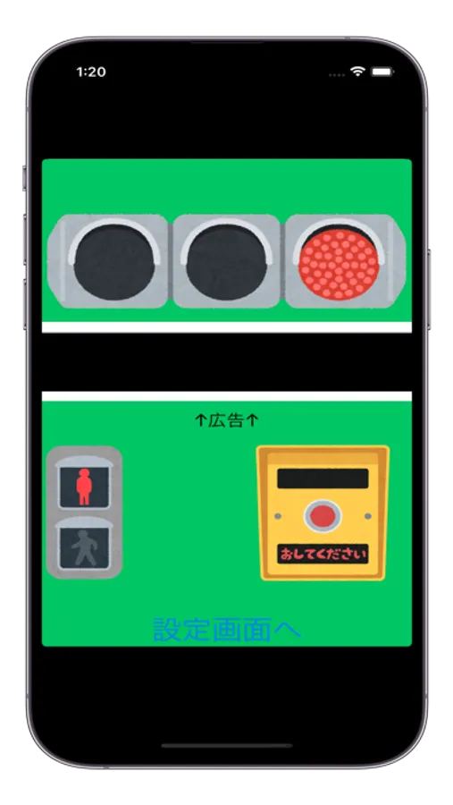 押しボタン式歩行者用信号機と、自動車用信号機のシミュレータです。