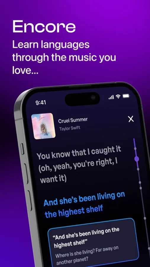 Speak Like a Local: Encore is your ticket to sounding like a native speaker. We use the rhythm of music to fine-tune your pronunciation and sentence formation.