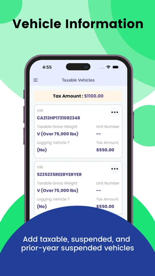 - Comprehensive reporting: Report taxable, suspended, and prior-year suspended vehicles accurately and comply with tax regulations.