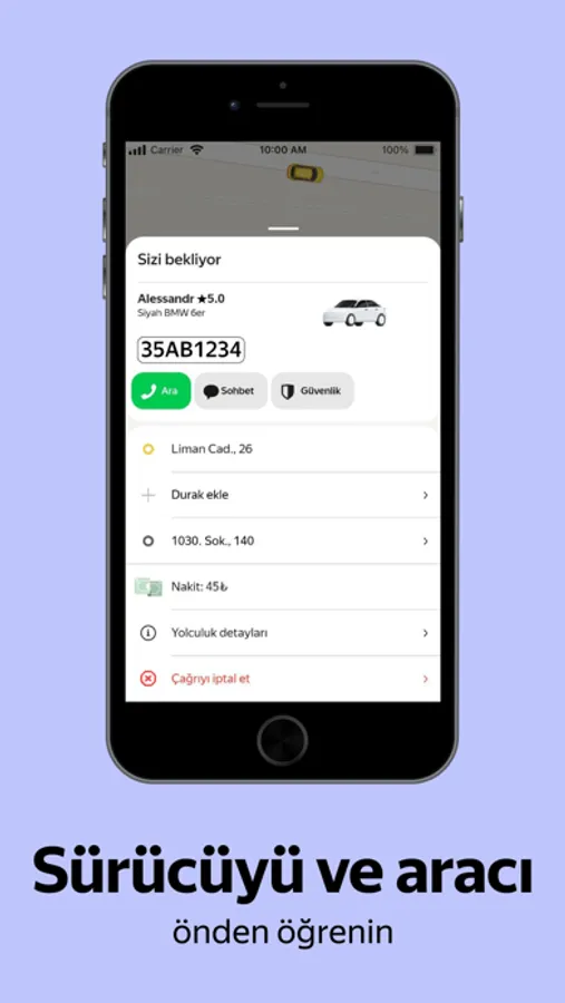 Navigasyon özelliği ile sürüşünüz daha da keyifli. Navigasyonumuz sayesinde müşterilerinize kolayca ulaşıp onları gidecekleri yere en uygun rotadan götürebilirsiniz. Sizin bir şey yapmanıza gerek yok: Adresi otomatik doldurur, rota oluşturur ve sizi yönlendirir. Ve evet, sizin için tamamen ücretsiz.