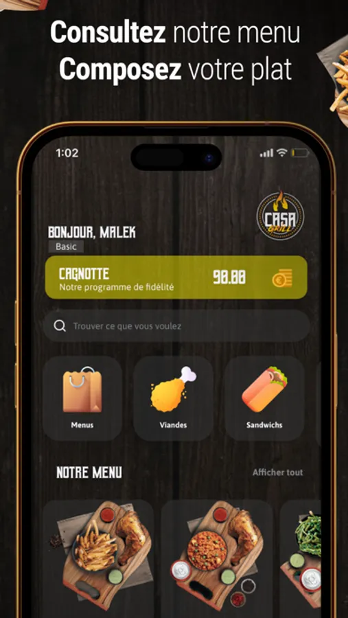 Join our "cagnotte" loyalty program and accumulate points redeemable for food. Also enjoy a side dish or a free drink.